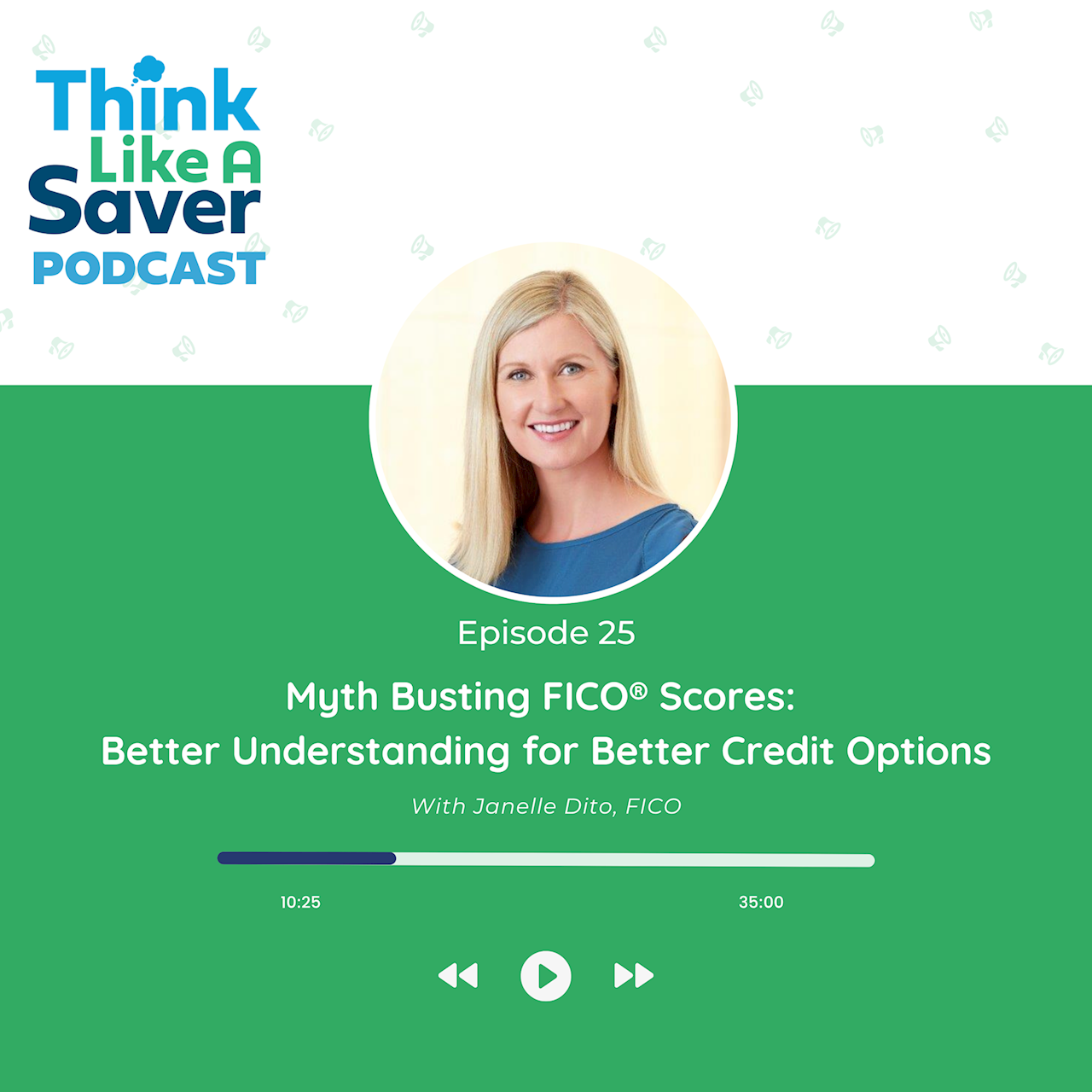 In this episode of Think Like A Saver, host Amy Miller sits down with Janelle Dito from FICO® to clear up some of the biggest myths about credit. Together, they break down:
